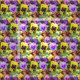 Linda Baysinger nettes Gelbes Pecks, Orange, Lavendel und lila Pansy-Blumen mit Watercolor maserten Blick.