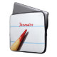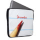 Ein handgeschriebener Laptop-Sieb von 15 Zoll mit einem knallroten Bleistift, der auf einem weißen Blatt ausgekleidetes Schulpapier liegt. Personalisieren Sie dieses scholastische Design, indem Sie Ihren Namen unterschreiben. Ideal für Schriftsteller, Lehrer oder Schüler in der Mittelschule oder Junior High.
