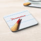 Ein handgeschriebenes Untersetzer-Set mit einem farbenfrohen Bleistift, der auf einem weißen Blatt ausgekleidetes Schulpapier liegt. Personalisieren Sie dieses scholastische Design, indem Sie Ihren Namen unterschreiben. Ideal für Schriftsteller, Lehrer oder Schüler in der Mittelschule oder Junior High.