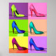 Poster im Stil der Mitte des Jahrhunderts Poster-Kunst der Stiletto Pumpen / High Heels in mehreren, hellen Primärfarben