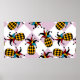 Stilisierte Ananas. Hut und Rhombus Harlequin. See Poster