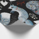 Stilisierte blaue Füchse mit aufwendigen floralen Geschenkpapier