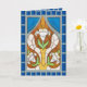 Wünschen Sie Familie und Freunde ein "Happy Oaster" mit dieser hübschen, etwas weniger offen religiösen Karte, die Farbglas in reichhaltiger Aqua-Blues simuliert, goldene Gelbtönen, leuchtende Frühlingsgläser und Bronze. Im Liberty-Stil, der britischen Version des Jugendstils, wird die Karte innen und außen mit großen Paneelen gezeichnet, die stilisierte Osterlililien darstellen. + Image Credit (RT 02): Antike Bilder einer geprägten Postkarte in Chromolithografie mit dem Titel A Joyful Oaster, Oaster Hymns Series, Nr. 714, die ursprünglich von Raphael Tuck & Sons, London, England, herausgegeben und 1912 in Sachsen, Deutschland, aus der Privatsammlung des Designers gedruckt wurde.