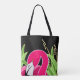 Abstrakte Rosa Flamingokunst mit grünem Blattwerk auf schwarzem Hintergrund