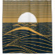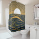 Stilisierte Sonne-Mond, dunkle Meeresdarstellung. Duschvorhang