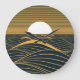Stilisierte Abbildung einer Sonne oder Vollmond, die auf einem dunklen Meer aufsteigt oder untergeht. Fang die aufgehende Sonne oder den Mond auf dem dunklen Meer! Sonne oder Mond, Himmelstanz. Wappen, Welle, Hintergrund, Muster, Dekoration, Wasser, Strand, Sommer, Natur, Illustration, Landschaft, Licht, Sonne, Poster, Meer, Mond, Sonnenuntergang, Meer, Linien, Umwelt