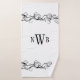 Lassen Sie sich mit einem einzigartigen Badetuch-Set verwöhnen, das mit dem Monogramm in der Mitte ein Wirbles Randdesign aufweist. Auf Wunsch können Sie dem weißen Bereich auch Farbe hinzufügen.