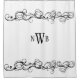 Lassen Sie sich mit einem ganz einzigartigen Duschvorhang verwöhnen und genießen Sie ein Wirbles Randdesign mit Ihrem Monogramm in der Mitte. Sie können dem weißen Bereich auch eine Farbe hinzufügen, falls gewünscht.