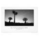 Erweiterung des Fotos mit einem Schwarzweißbild von drei verschiedenen Köchenbäumen, die im Quiver-Baumwald bei Keetmanshoop, Namibia, gegen den Himmel schweifen.