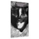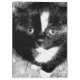 Dieses niedliche Kätzchen ging in die Pferdeställe meines Mannes und bleibe dort. Ich habe das Bild digital so verändert, dass es wie ein nahes, schwarz-weißes Porträt eines Smoking-Kätzchens aussieht, das in einem Augenblick ruhiger Neugier aufgenommen wurde. Die großen, reflektierenden Augen des Kätzchens blicken eingehend und zeichnete den Fokus inmitten des krassen Kontrastes zwischen seinen dunklen Fell- und Weißmarkierungen. Weiche Texturen umschließen das Kätzchen, verstärken das Gefühl von Wärme und Einsamkeit, während die monochromatische Palette der Komposition eine Schicht künstlerischen Mysteriums hinzufügt.