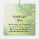 Personalisierte Weihnachtsschmuck in der Keramik im Stille zeigt eine Naturlandschaft, die durch den Wald strahlt und einen wunderschönen Baum mit grünen und gelben Blätter hervorhebt. Es zeigt das geliebte Gebet, "Gott, gewähre mir die Gelassenheit, Dinge zu akzeptieren, die ich nicht ändern kann; Mut, Dinge zu ändern, die ich kann, Und die Weisheit, den Unterschied zu wissen." Passen Sie den Rücken mit Namen, Datum und Segen oder den Details Ihrer Wahl an._