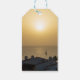 Aussicht auf die Bungalow-Anlage mit einem Segelboot bei Sonnenuntergang in Costa Adeje, Spanien, Teneriffa