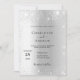 Eine moderne, minimalistische und formelle Hochzeitseinladung. Imitat silber aussehender Hintergrund mit Imitat Glitzer. Personalisieren Sie Ihre Namen und Details und fügen Sie diese hinzu. Schwarze Buchstaben.