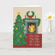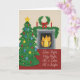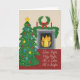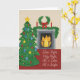 Diese Weihnachtskarte zeigt ein Aquarellbild eines gemütlichen Weihnachtswohnzimmers mit den Texten der Stillen Nacht.