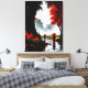 Dieses digitale Kunstwerk mit Rot Tönung zeigt einen ruhigen Moment auf dem vietnamesischen Land: Zwei Personen in traditionellen Kegelhüten und Gewändern durchqueren einen flachen Bach unter einer leuchtend roten Baumkrone. Die Szene ist ein kunstvoller Mix aus Natur und Kultur, eingebettet in einen sanften Nebel, der die kräftigen Farben mildert und dem Bild eine traumhafte Tiefe verleiht. Feurige Blätter bilden einen eindrucksvollen Kontrast zu den goldgelben und sattgrünen Feldern im Hintergrund und rahmen die Figuren in einer friedlichen Umarmung der Landschaft.