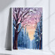 Stiller Schneefall Winterwald Aquarellmalerei Poster