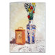 Blume in einer Porzellanvase mit goldener Kutschuhr bleiben erhalten. Leere Karte für deine eigene Nachricht.