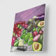 100% handbemalt signierte Original Stillleben von Avocados, Limes, Lila Onions und Eggplant. Gut für Küche oder Esszimmer.