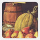 Stillleben mit Birnen, Melone und Fass Quadratischer Aufkleber