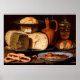Stillleben mit Käse, Mandeln und Brezeln Poster