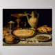 Stillleben mit Tee, Huhn, Brot und Oliven Poster