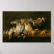 Stillleben toter Vögel und Hasen auf dem Tisch Poster