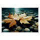 This is not just wall art. It is a study in contrast—warmth and coolness, movement and calm, fragility and endurance. The submerged leaves symbolize transition and reflection, while the rounded stones evoke stability and grounding.