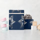 Elegantes Silver Look Stars Muster blaues Geschenkpapier
