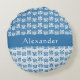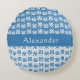 Das trendige Kissen mit runden Akzenten ist mit einem Wirblen, griechisch wiederholenden Blumenmuster in Blau und Weiß mit einem Muster in umgekehrter Weiß mit Blau versehen. Personalisieren Sie Ihre Daten mit dem Namen oder einer anderen speziellen Nachricht.
