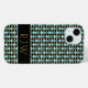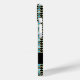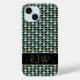 Erstellen Sie Ihre eigene stilvolle iPhone-Gehäuse im Monogramm, die von der Art Deco-Ära inspiriert wurde. Diese personalisierte Vorlage zeigt Ihre mit Monogramm Initialen in einem eleganten Schriftart, zusammen mit einem geometrischen Muster in Blau, Grün, Schwarz und Gold. Ein schönes Geschenk für Freunde und Familie zum Geburtstag, Urlaub und mehr!
