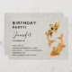 Eine Einladung zum Geburtstag mit einer Illustration eines Goldes Koi Fische schwimmen zusammen.