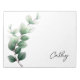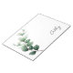Stilvolle grüne Linse Name Notepad. Ein minimalistisches und raffiniertes modernes Arbeitsdesign zu schaffen, ist ein angenehmes Unterfangen. Das Design beinhaltet einen Single Zweig von grünen und goldenen Eukalyptus-Blätter, die den Raum anmutig schmücken und von der unteren rechten Ecke sanft hochlaufen. Um eine persönliche Touch hinzuzufügen, wird Ihr Name elegant am unteren links platziert. Wenn Sie weitere Anpassungen vornehmen möchten, können Sie die Option Klicken, um weitere Anpassungen vorzunehmen, in der Sie den Text, den Stil des Schriftartes und die Farben nach Ihren Wünschen ändern können.