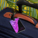Stilvolle Gepäckausgabe mit mehrfarbigen Farbtönen und Farbtönen in lila Rosa und , lila Glitzer und Schwarz in einem glamourösen abstrakten Design mit einem Monogramm auf der Vorderseite und Ihrem benutzerdefinierten Text auf der Rückseite in der Wahl von Schriftart Stil, Farbe oder Größe (in einem eleganten kalligraphischen Skript-Schriftart gezeigt) oder löschen Sie den Beispieltext, um leer verlassen. HILFE: Für Hilfe bei der Modifizierung oder Personalisierung des Designs, bei Farbänderungen, bei der Größenänderung, bei der Übertragung des Designs auf ein anderes Produkt oder wenn Sie die Dinge koordinieren möchten, wenden Sie sich bitte an den Designer, BEVOR Sie über die Registerkarte Zazzle Chat MESSAGE unten bestellen, oder per E-Mail an makeitaboutyoustore@gmail.com.