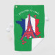 Dies ist ein stilvolles grünes patriotisches, zum PARIS Monogram Golf Towel, mit der Karte Kontur von Frankreich in der TRICOLORE Fahne von FRANKREICH. Oben kurvt, heißt der Text in PARIS HINZUGEFÜGT. Der Eiffelturm (Tour Eiffel) ist eine Grafik, und es gibt Gruppen von roten Herzen. Die kurvige Position auf diesem patriotischen Paris Lover Golf Handtuch ist CUSTOMIZABLE, sodass Sie mit Ihrem eigenen bevorzugten Gruß ersetzen oder löschen können. In der rechten unteren Ecke befindet sich ein ZOLLMONOGRAMM. Sie können die Hintergrundfarbe dieses Pariser Golf Handtuches, das Sie bevorzugen, aus den verfügbaren Optionen wählen.