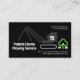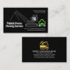 Ein ganz schwarzes Cover mit einem kreativen Zuhause-beweglichen Kran, der Ihren Firmennamen erhöht. Ganz oben auf der Karte befindet sich eine Slogan-Beschriftung, mit der Sie Ihre Dienste veröffentlichen können. Nach Süden bis zur Basis liegen die Kontaktdaten. Oben ist das goldene Zuhause-LKW Logo, das Sie benutzen können. Darauf folgen der Firmenname, die Kontaktdaten und ein Slogan zur Werbung für Ihre Dienste. Eine tolle Karte für LKW-Transport und Zuhause-Umzüge.