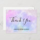 Vielen Dank Postkarte mit einem schönen abstrakten Muster. Lila, rosa und Blues mischen, mischen und fließen zusammen, um ein elegantes und wunderschönes abstraktes Wasserfarbendesign zu schaffen.