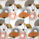 Stilvolles, modernes Muster aus der Mitte des Jahrhunderts mit hübschen Blume-Illustrationen und Kreiskreisen in Kreiselform; in Orange-, Taupe-, Schwarz- und Weiß-Tönen. ein fabelhaftes Stoffdesign, das durch Retro-Stile aus der Mitte des Jahrhunderts inspiriert wurde; in verschiedenen Stoffstilen erhältlich und in Längen geschnitten, um Ihre Nähaufgaben und handwerklichen Bedürfnisse Anzug