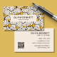 Moderne botanische Visitenkarte mit Retro-Blumen-Creme und Senf-Blume auf schwarzem Hintergrund, perfekt für Floristen, Innenarchitekten, Stylist und andere Beruf. Passen Sie den Text und den QR-Code je nach Bedarf an. Originale Kunst von Künstlern eigene Illustrationen. Bitte nutzen Sie den unten stehenden Button für die Nachricht, um weitere Anpassungen und spezielle Anfragen zu erhalten. © Zoe Chapman Design