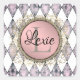 Ein stilvolles, weißes und schimmerndes rosa, schimmerndes, harlequin-Diamantenmuster als Hintergrund mit einer rosa, blütigen Kugel mit goldenem blühte, wo man es mit einem Buchstaben oder Logo personalisieren kann, um es zu einem einzigartigen eigenen zu machen. Elegante Glasvibes.
