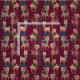 Stilvolle rosa Lamas mit Nackenschals auf bordeauxrotem Hintergrund.