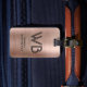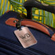 Eleganter Chic Stilvolle 2 Monogramm Erstname Rose Gold Metall Custom Personalisiert Luggage Tag. Dieses Design mit vollständigem Namen Typografie mit 2 Monogramm Initial (in doppelzeiliger Schrift Schriftart Stil), Adresse Infos über Imitate Rose Gold Brushed Metal (Pink Rose gold metallische Folie Look) Hintergrund. Diese sind einfach zu anpassen. Stilvolle feminine oder männliche Geschenke für Hochzeit, süße 16 Geburtstag, Abschluss, Brautparty und für alle, die Lieben eleganten Stil.