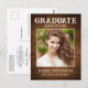Rustikales Land themed Foto Abschluss Ankündigung Postkarten. Dieses Design zeigt rustikale Stil bedrückte Typografie lesen "Graduate", das Jahr des Abschlusses und natürlich die Graden Namen. Die Fotos heben die Karte hervor und sind mit einem farbenfrohen Holzputz-Hintergrund versehen. Die Kartenrückseite bietet personalisierte Textstellen für Informationen über Ihren Abschluss oder können gelöscht werden, wenn Sie eine Nachricht übergeben möchten. Ideal für Schüler und Senioren, die an der Hochschule, an der Uni und an der Universität arbeiten.
