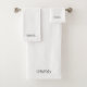 Stilvolles, modernes, elegantes Schwarz-Weiß-Set mit mono-schick-zartem Bath Handtuch. Anpassbarer schwarzer Schriftzeichen-Text, weißer schlichter Farbhintergrund. Passen Sie es mit Namen, Text, Monogramm, Paarnamen oder Firmennamen an.