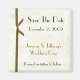 Dekorativ speichern Sie den Datums-Magneten getan, in Creme und gold motbelten Hintergrund mit einem goldbraunen Satin wie Band und Bogen auf der links Seite. Passen Sie den Text auf alles an, was Sie gewollt haben, um ihn für Sie persönlich zu machen.