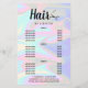 Schönes Design der hairstylistischen Preisliste mit bunten Imitaten holografische Textur, Schere und elegantem kalligraphischen Schriftart.