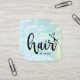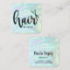 Schönes Design mit hairstylistischer Visitenkarte mit bunten Imitaten holografischer Textur, Schere und elegantem Kalligraphie-Schriftart.