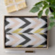 Modernes Papiertaschentuch mit Imitaten Glitzer Gold, pachy rosa, weiß & schwarz Zickzack Muster.