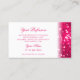 Mit diesem auffälligen und stilvollen Design der Visitenkarte mit glänzend rosa Glitzer mit hellen Sternen und auf der Rückseite mit einem weißen Hintergrund mit einem Glitzer-Rahmen vermitteln Sie einen bleibenden Eindruck. Passen Sie diese Visitenkarte einfach an Ihre Marke an. Alles, was Sie sehen, ist Imitat Glitzer, aber eine Qualität Print Design. ♡ IHRE LIEBLINGSBERECHTIGTE - Designer :-) Luxuriöse und berufliche Geschäftsausstattung. ♡ wünsche Ihnen viel Spaß mit diesem Artikel. ♡ www.zazzle.com/store/your_favorite ♡ www.zazzle.com/store/favorite_markeplies ♡