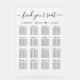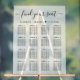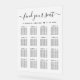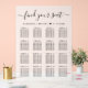 Stilvolle Hochzeitssitzkarte mattiertes Acrylzeichen für bis zu 16 Tische mit "finden Sie Ihren Sitz" in einem schicken Skript und Ihre Namen und Hochzeitsdatum verbunden durch ein Herz in schlicht modernen Typografie.