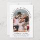 Stilvolles Ambiente oder private Hochzeitsankündigung und Hochzeitsempfang Save the Date. Die Vorderseite zeigt Ihr Foto in einem Bogenrahmen, "Esst Drink & Celebrate" in eleganter Serifentypografie, Ihre Vornamen, Datum und Ort des Empfangs. Auf der Rückseite personalisieren Sie Ihre Save the Date Angaben und fügen Sie Ihre Namen in ein signaturartiges Skript ein.